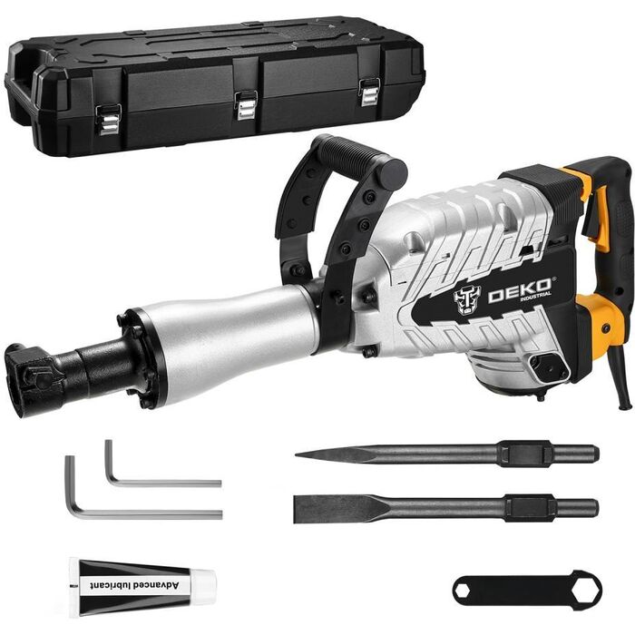 | Особенности | Отбойный молоток DEKO DKJH2050 используется для разрушения бетона и кирпича, удаления старых покрытий. Дополнительная D-образная рукоятка способствует уверенному удержанию инструмента в руках. Длина кабеля - 3,5 м. |