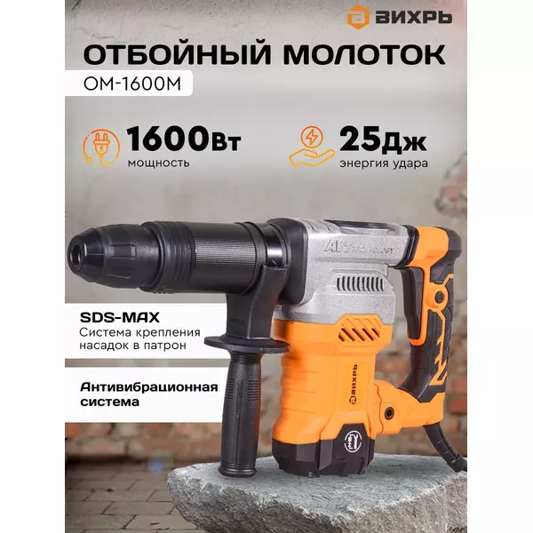 | Комплект поставки | Отбойный молоток, пика, долото, дополнительная рукоятка, кейс пластмассовый, смазка, запасные щетки. |