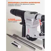 • Мощнейший инструмент для ударного разрушения любых конструкций, при этом очень удобный в эксплуатации благодаря быстрозажимному патрону, регулируемой дополнительной рукоятке, быстрому доступу к щеткам и удобному кейсу