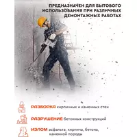 • Предназначен для разрушения конструкций из бетона, железобетона, кирпича и камня, долбления уплотненного грунта, асфальтовых, бетонных и плиточных покрытий и других строительных работ