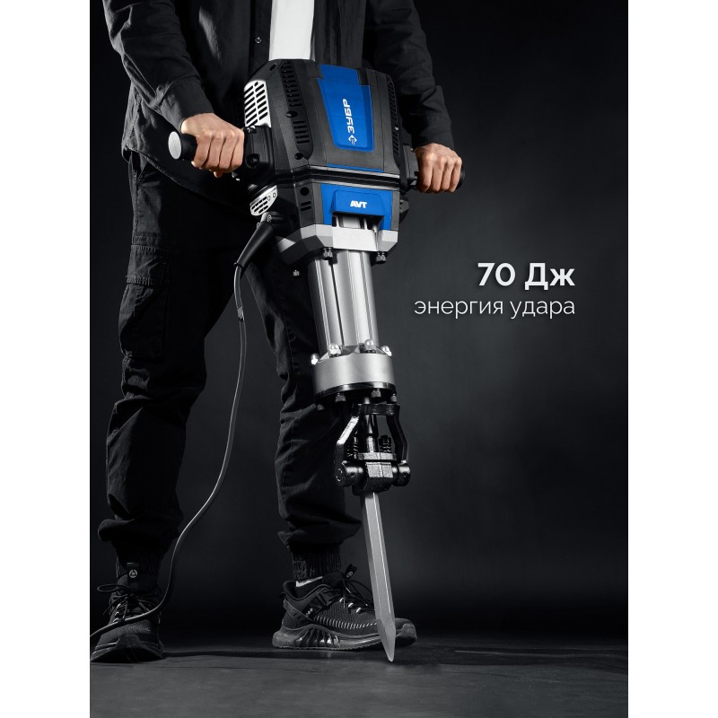 Мощный представитель среди инструментов на рынке с энергией удара 70 Дж. Подходит для разрушения конструкций любого типа. Провод длиной 6 метров, удобный двуручный хват и антивибрационная система позволяют надежно удерживать инструмент, а значительный вес инструмента сам создает необходимое давящее усилие для продуктивной работы