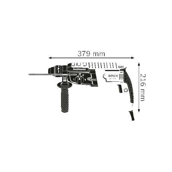 - Перфоратор, дополнительная рукоятка, чемоданчик, ограничитель глубины 210 мм, салфетка, руководство пользователя, упаковка.
