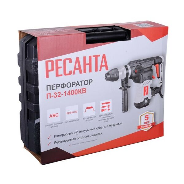 - Перфоратор П-32-1400КВ имеет все три режима работы: сверление, сверление с ударом и функция удара. Предусмотрена система защиты рабочего механизма от попадания пыли.