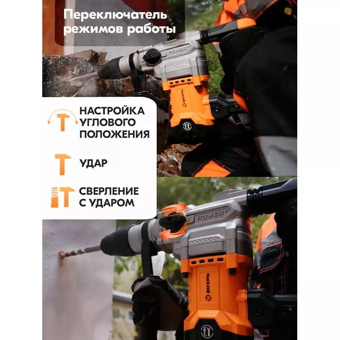 | Комплект поставки | Перфоратор, ограничитель глубины сверления, боковая рукоятка, кейс пластмассовый, руководство по эксплуатации; упаковка. |