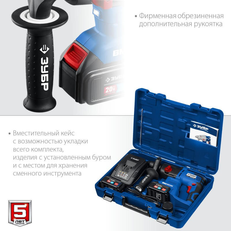 - Патрон SDS-Plus для быстрой замены расходного инструмента
