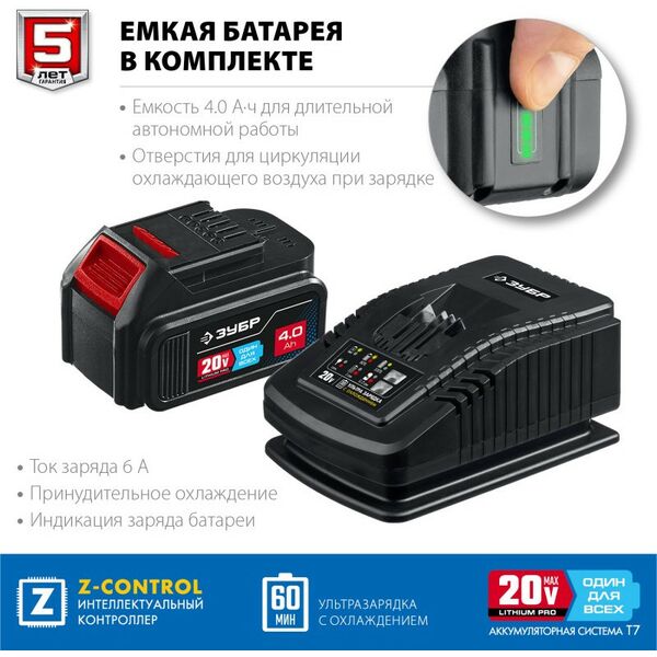 Преимущества - Две батареи большой емкости в комплекте для безостановочной работы
