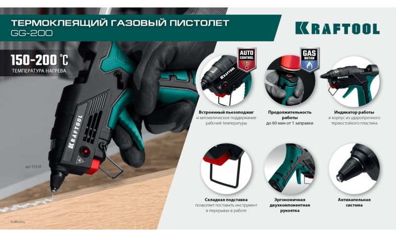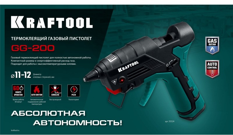 Газовые термоклеевые пистолеты KRAFTOOL выполненны из высококачественных материалов. Компактный ручной автономный инструмент, который удобно использовать в труднодоступных местах, или при отсутствии возможности подключения к системе электроснабжения. Благодаря пьезоподжигу пламя горелки зажигается легко и быстро.