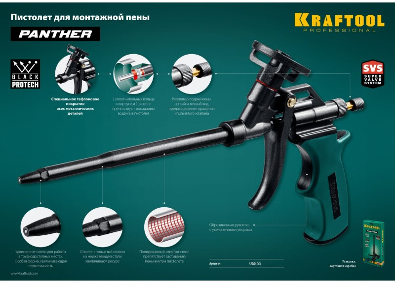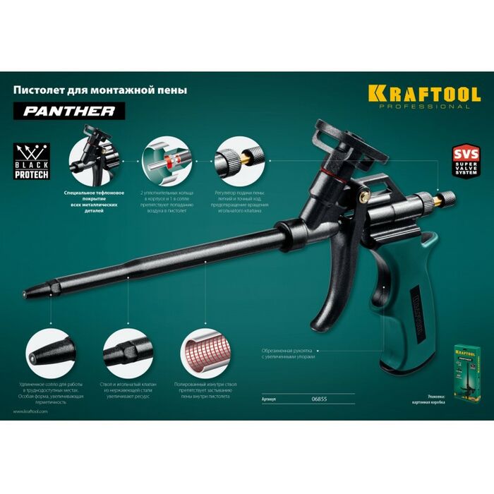 Профессиональный пистолет для монтажной пены KRAFTOOL PANTHER с полным тефлоновым покрытием [06855_z02]