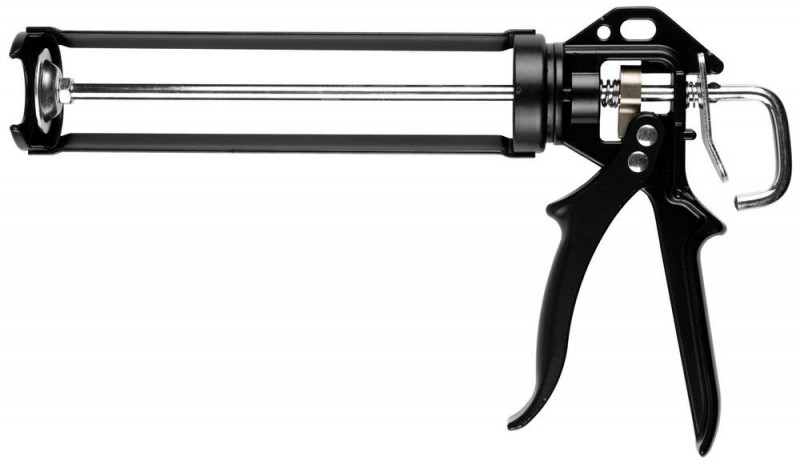 Пистолет для герметиков подходит для работы с картриджами объемом 310 мл, имеет усиленную скелетную конструкцию из стали, ручку из алюминиевого сплава, которые способствуют равномерной подачи клея либо герметика. Данная спецификация обеспечивает прочность и надежность конструкции пистолета при использовании.