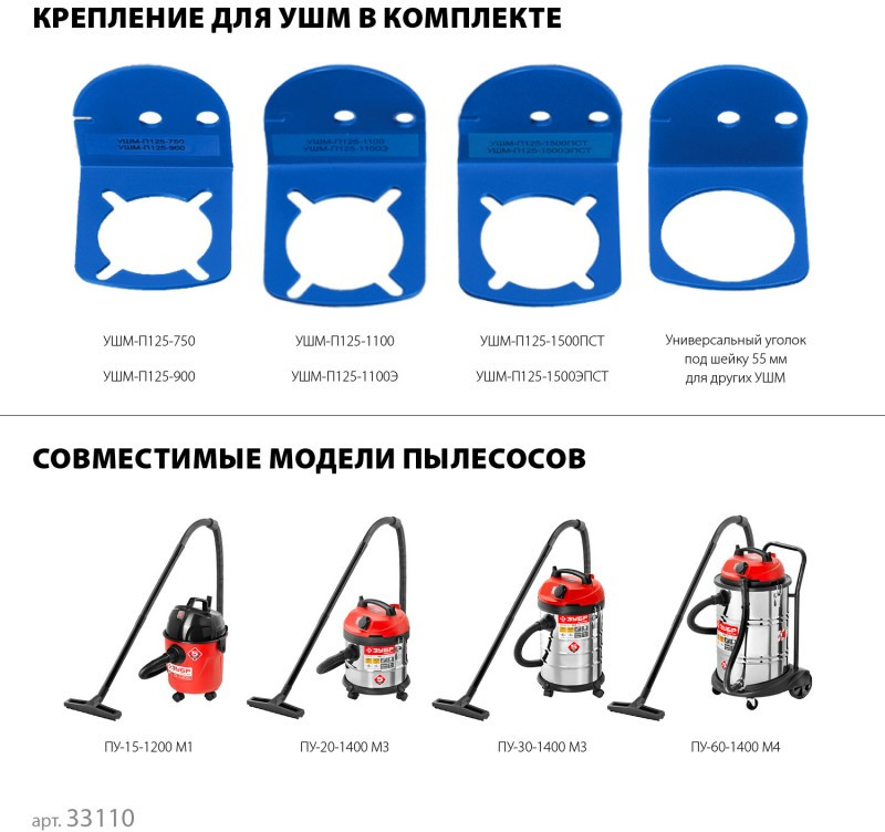 - Количество креплений для УШМ, шт: 3
