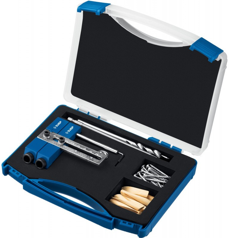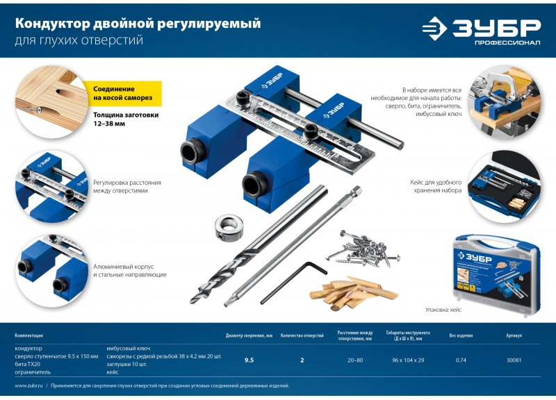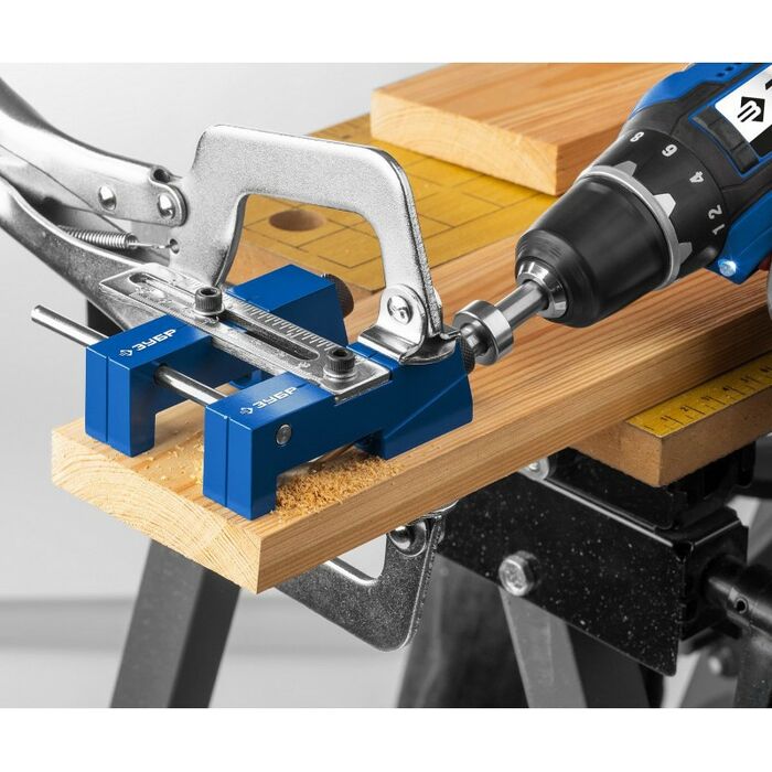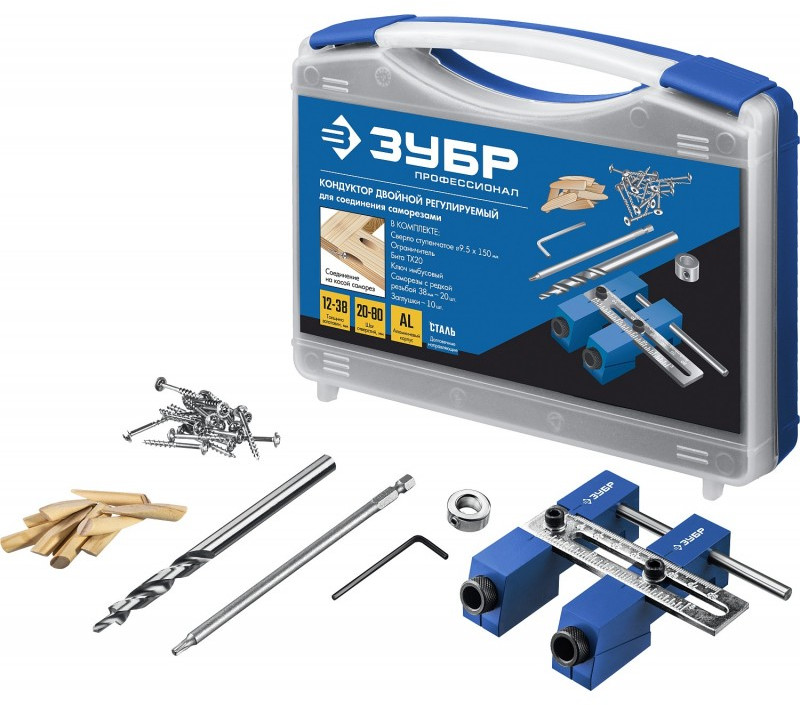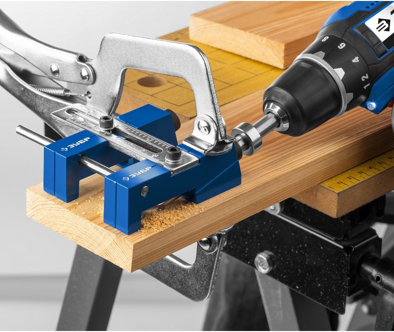 - Использование кондукторов значительно упрощает процесс соединения деревянных деталей. Кондуктор предназначен для сверления глухих отверстий и точно позиционирует ступенчатое сверло. Глухое отверстие имеет внутри специальный профиль - больший диаметр на входе, ступенька, меньший диаметр на выходе. Ступенька в глубине глухого отверстия служит опорной поверхностью для головки самореза, обеспечивая прочное соединение деталей. Достаточно просверлить отверстия только в одной из соединяемых деталей и стянуть детали специальными саморезами для глухих отверстий. При выборе самореза нужно учитывать толщину соединяемых деталей.