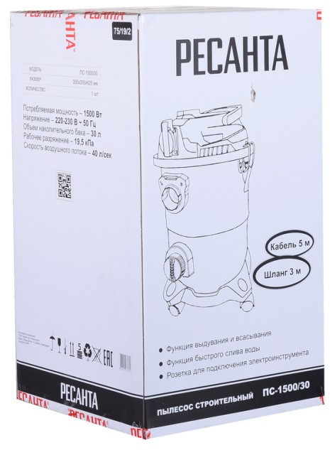 Строительный пылесос ПС-1500/30 Ресанта предназначен для сухой и влажной уборки помещений, а также для совместного использования с электроинструментом при принудительном удалении продуктов строгания, пиления. Может убирать крупные частицы мусора, а также воду.