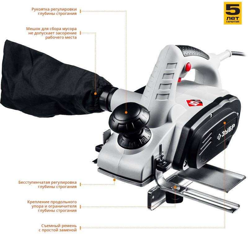 - Мощный рубанок для строгания шириной 82 мм и глубиной 2 мм, а также выравнивания поверхностей и снятия фасок. Конструкция обеспечивает возможность выборки четверти. Благодаря бесступенчатой регулировке глубины строгания с точностью 0.1 мм позволяет производить работу с высоким качеством