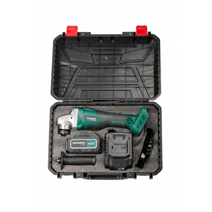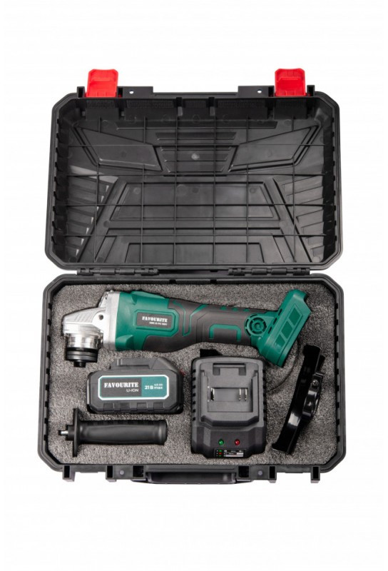 - Аккумуляторная угловая шлифовальная машина в кейсе FAVOURITE OBS 21 FG 125 С предназначена для шлифования черных металлов (сталь, чугун), зачистки сварных швов, резки металла. Машина предназначена для небольших объемов работ. Инструмент не предназначен для использования по дереву, кирпичу, камню, бетону, асбесту и прочим материалам, образующим большое количество пыли