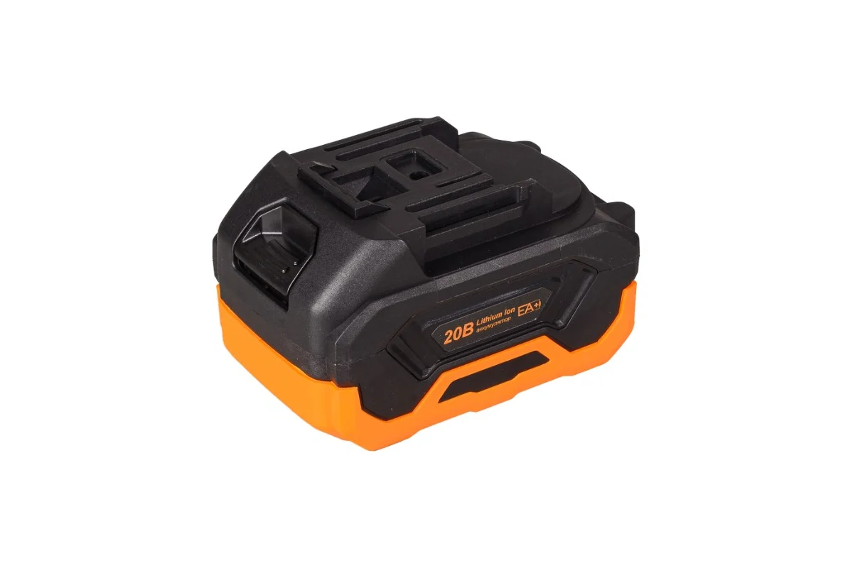 Инструмент работает от литий-ионного аккумулятора с параметрами 20 В и 4 Ач, что гарантирует длительную автономную эксплуатацию и достаточную мощность для выполнения сложных задач.