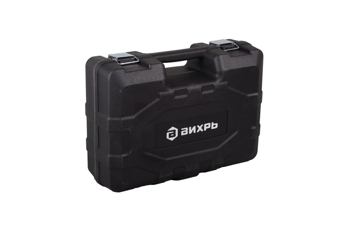 Комплектация включает прочный фирменный кейс, который защищает инструмент и аксессуары при хранении и транспортировке, обеспечивая их сохранность.