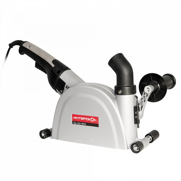 Штроборез – инструмент для проделывания штроб (борозд) в каменной, кирпичной, бетонной поверхностях для прокладки инженерных коммуникаций. Оснащается двумя алмазными дисками. В частном случае возможно использование штробореза с одним диском для резки твердых материалов в качестве угловой алмазной пилы. Машина имеет регулятор погружения, благодаря которому можно получить штробу необходимой глубины. Изменение глубины штробы производится без дополнительных инструментов. Любая резка твердых материалов вызывает повышенное пылеобразование, поэтому штроборезы оснащаются эффективными системами пылеотвода и обязательно используются со строительными пылесосами. Узел пылеудаления использует кинетическую энергию частиц для направления их в патрубок пылеотвода. Диаметр пылеотвода стандартизован по системе 35, что соответствует присоединительному диаметру на шлангах пылесосов ИНТЕРСКОЛ.