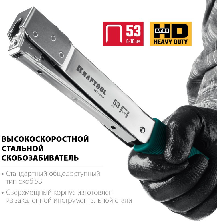 - Тип и размер используемых скоб: 53 (6 -10 мм)