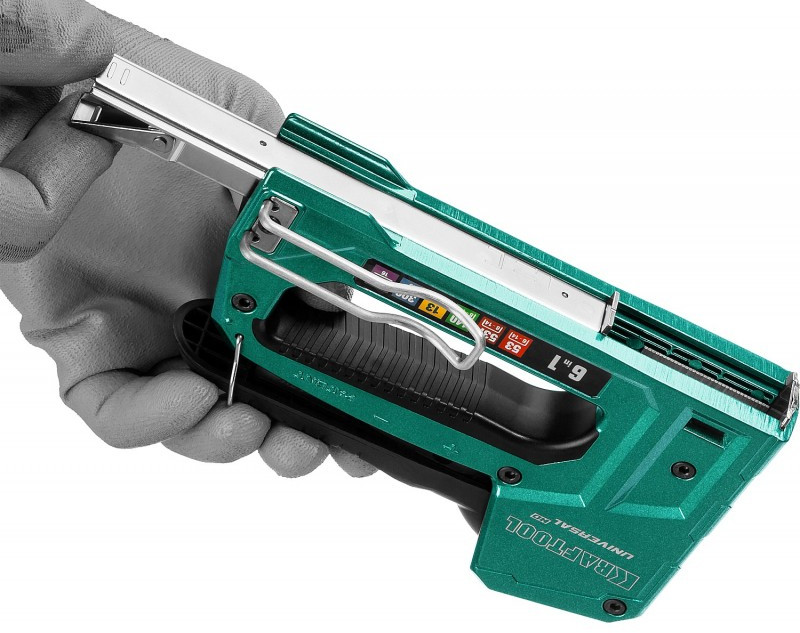 - Запатентованная инновационная конструкция, позволяющая работать с различными типами скоб и гвоздей