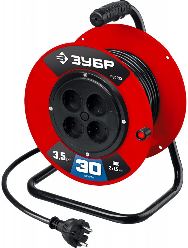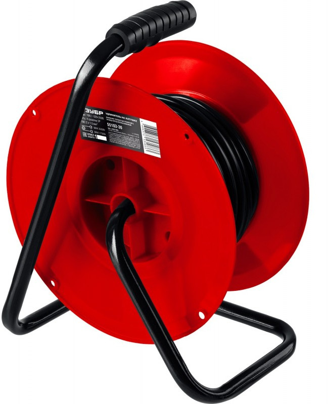- Для безопасного и легкого перемещения силового удлинителя ЗУБР по рабочей площадке предусмотрена прорезиненная эргономичная рукоятка