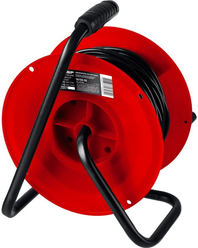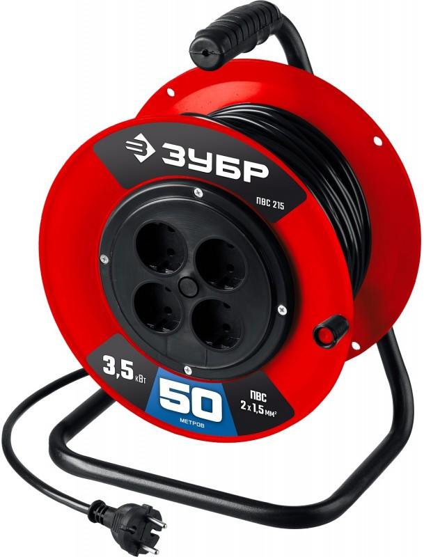 - Для безопасного и легкого перемещения силового удлинителя ЗУБР по рабочей площадке предусмотрена прорезиненная эргономичная рукоятка