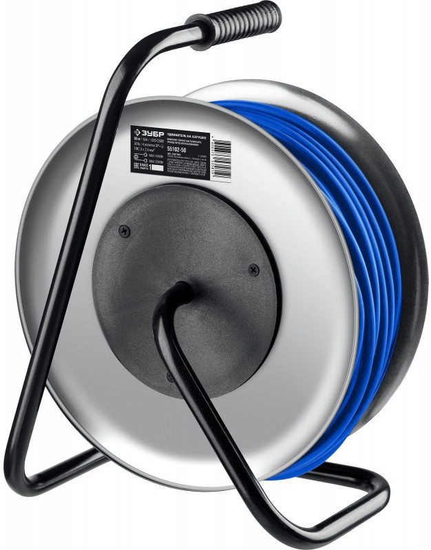 - Для безопасного и легкого перемещения силового удлинителя ЗУБР по рабочей площадке предусмотрена прорезиненная эргономичная рукоятка