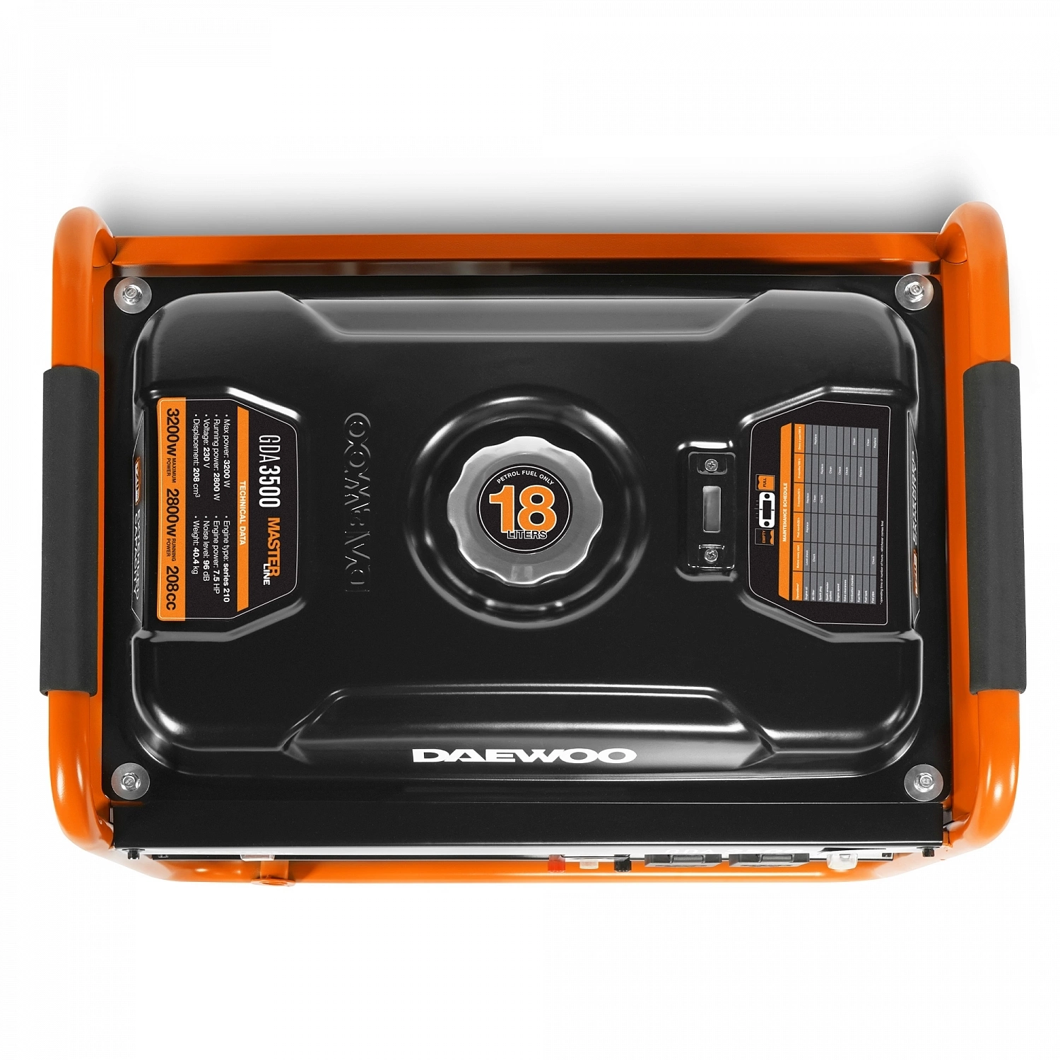 | Особенности | Профессиональный двигатель DAEWOO, увеличенный топливный бак 18 л, быстрый запуск, многофункциональный дисплей, AVR (Automatic Voltage Regulator), умная защита от перегрузок, датчик уровня масла, низкий уровень шума, прочная рама, 100% медный альтернатор, гарантия Daewoo |