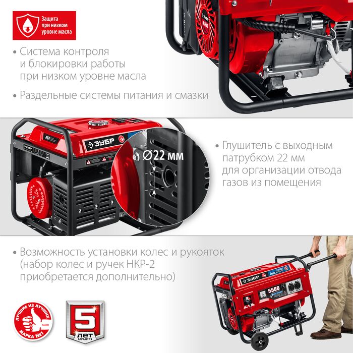 - Мощный двухтопливный электрогенератор мощностью 5.5 кВт, работающих как на бензине (АИ-92), так и на газе – при этом, для использования газа не требуется установка дополнительного оборудования. Генератор этой модели используется в загородном доме, строительной площадке и дачном участке для питания бытовой техники, насосных станций и электронагревателей. Аккумуляторная батарея не входит в комплект поставки. Емкость батареи не менее 14 А*ч.