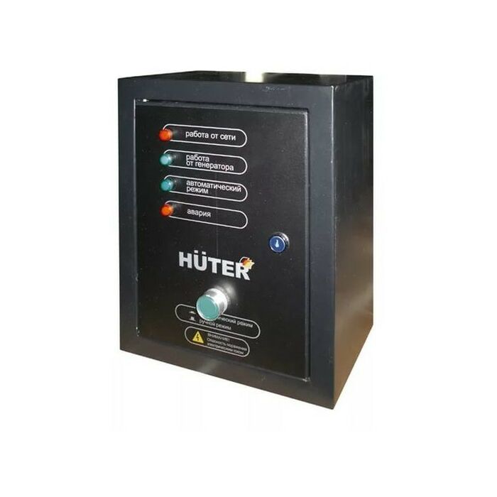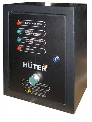 - Данная модель блока автоматического ввода резерва создана компанией Huter и может работать как в ручном, так и в автоматическом режиме. Конструкция рассчитана на эффективную работу в температурной среде от +10 до +40 °С. В технические возможности блока автоматики заложена возможность трех последовательных попыток запуска бензинового генератора.