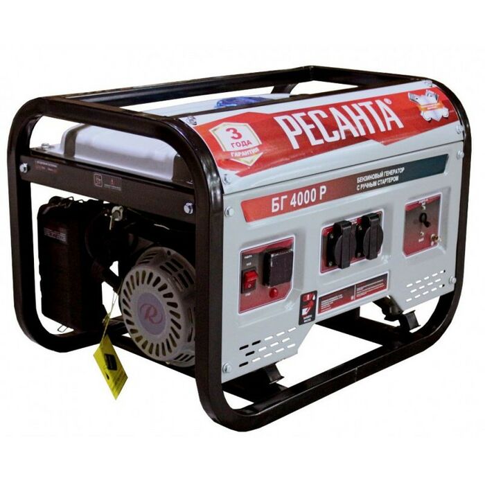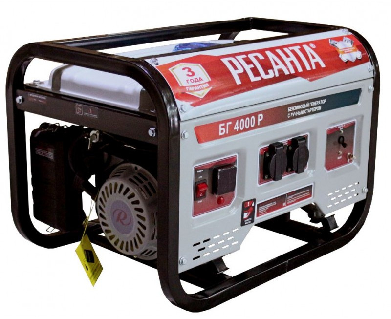 - В условиях временного или постоянного отсутствия электроэнергии обеспечить питание электрооборудования можно с помощью генератора РЕСАНТА модели БГ 4000 Р. Несмотря на компактные габариты и относительно небольшой вес, бензогенератор демонстрирует высокий КПД и хорошие показатели мощности