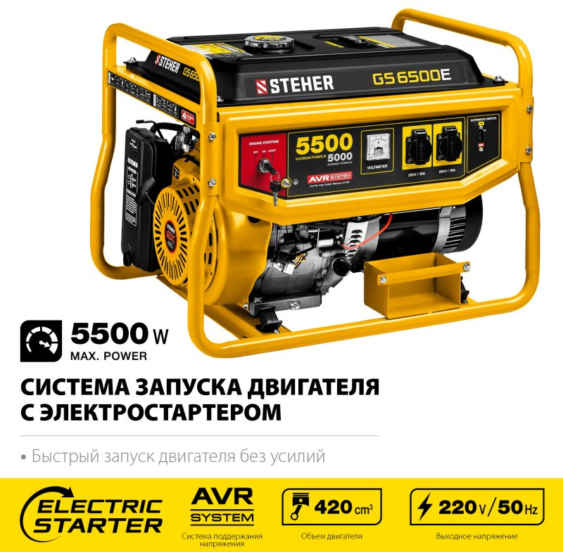 - Тип генератора: бензиновый, однофазный, синхронный, щеточный