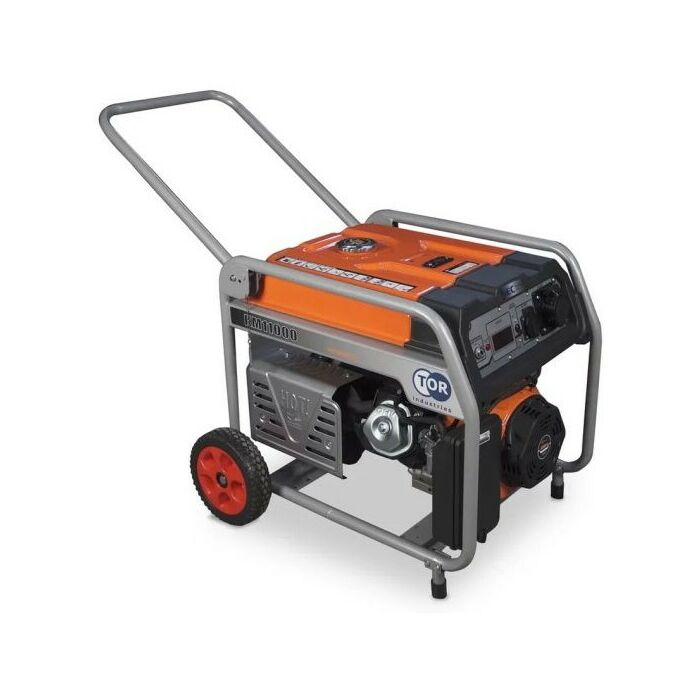 Генератор бензиновый TOR KM11000H 8кВт 220В 33л с кнопкой запуска и колесами эта мощная модель может снабжать электроэнергией несколько потребителей одновременно либо одного, но с высокими пусковыми токами. Рекомендуется для электроснабжения дома, небольшого учреждения, офиса, магазина, производства. Вместительный бак обемом 33 литра бензина обеспечит беспрерывную работу на протяжении 9 часов. Синхронный альтернатор с медной намоткой позволяет вырабатывать чистый ток и выдерживать высокие нагрузки в момент запуска потребителей с электродвигателем. Кнопка запуска с электростартером облегчает процесс запуска генератора. Все рабочие механизмы прочно закреплены на массивной металлической раме. Наличие колес в комплекте помогает транспортировать генератор без особых усилий. Сфера применения: частные дома, мастерские, производственные площадки, строительные, дорожные работы, магазины, офисы.