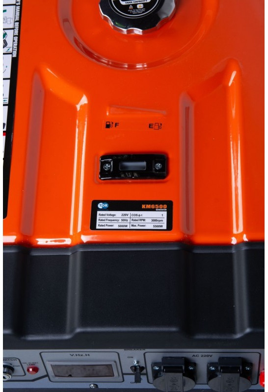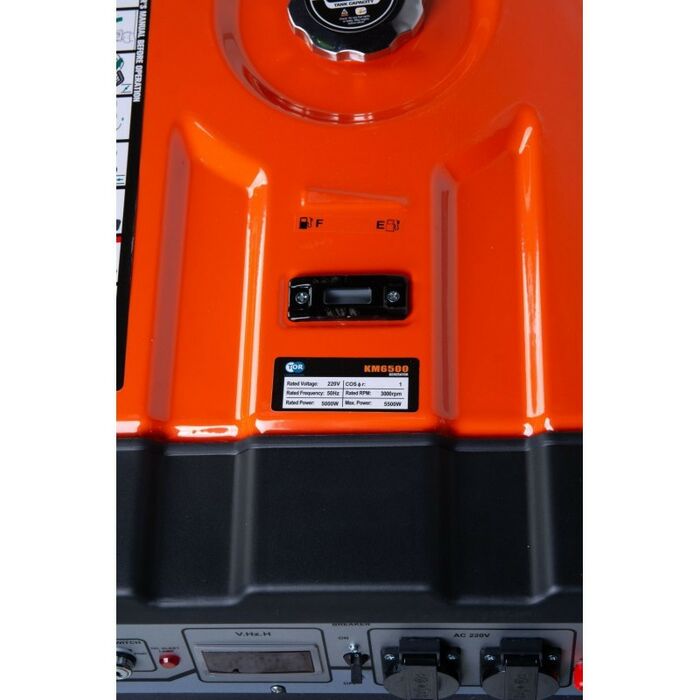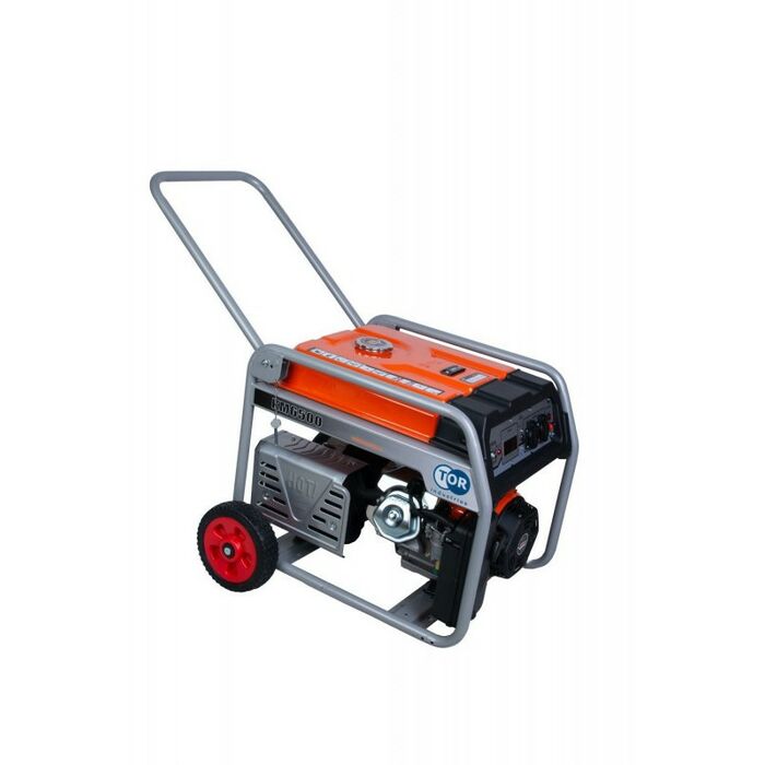 Генератор бензиновый TOR KM6500H 5,0кВт 220В 27л с кнопкой запуска и колесами эта мощная модель может снабжать электроэнергией несколько потребителей одновременно либо одного, но с высокими пусковыми токами. Рекомендуется для электроснабжения дома, небольшого учреждения, офиса, магазина, производства. Вместительный бак на 27литров бензина обеспечит беспрерывную работу на протяжении 9 часов. Синхронный альтернатор с медной намоткой позволяет вырабатывать чистый ток и выдерживать высокие нагрузки в момент запуска потребителей с электродвигателем. Кнопка запуска с электростартером облегчает процесс запуска генератора.