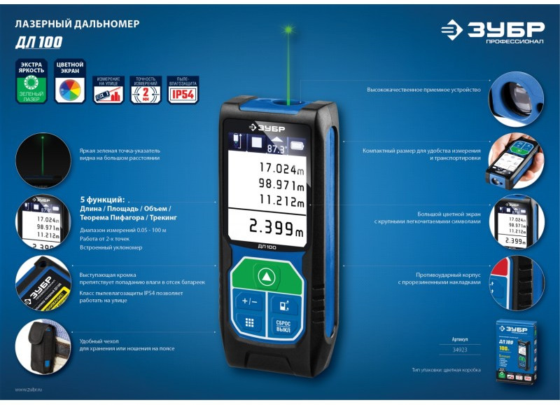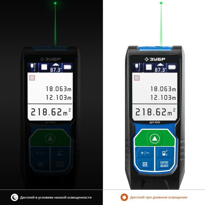 - Цветной экран и зелёный луч обеспечивает максимальную точность проведения измерений