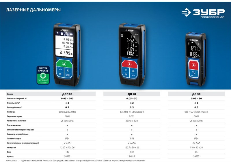 Наличие товара Зубр Профессионал ДЛ-50