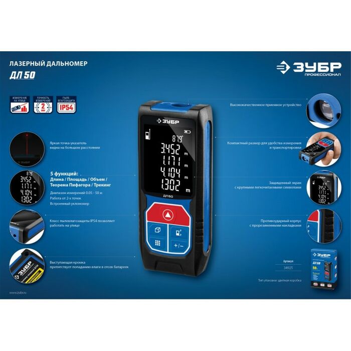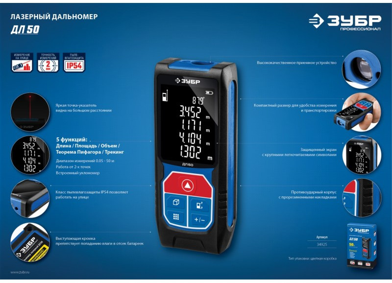 - Дальность измерения, м.: 50
