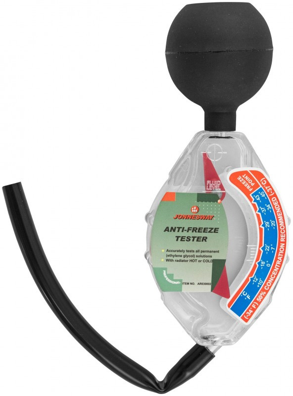 Ареометр охлаждающей жидкости Jonnesway AR030002 пригодится в автосервисе или автомастерской. Прибор необходим для определения плотности жидкости систем охлаждения. Принцип работы основан на всемирно известном законе Архимеда - вес вытесненной жидкости равен весу погруженного в неё тела. Чем плотнее жидкость, тем выше всплывает предмет.
