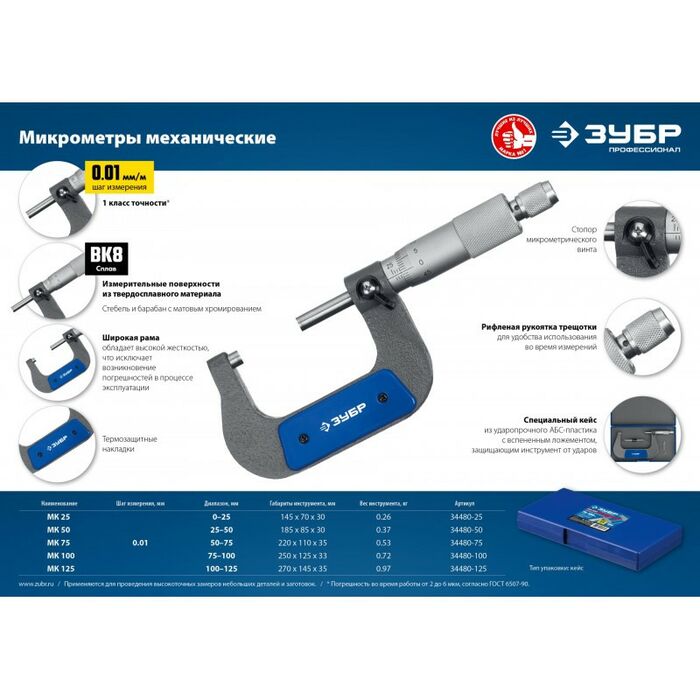 - Тип микрометра: Механический