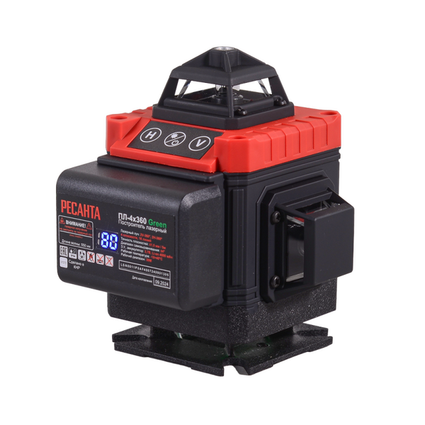 Построитель лазерный ПЛ-4Х360ШС Green Ресанта - измерительный прибор, который позволяет выполнять измерительные задачи в строительстве: построение горизонтальной и вертикальной плоскостей для выверки и контроля правильности взаимного расположения плоскостей, установки угла в 90 градусов между плоскостями. Прибор позволяет контролировать неровность поверхности относительно горизонта и перпендикулярной плоскости.