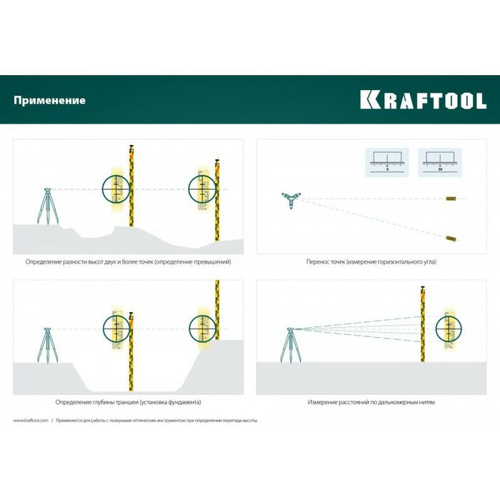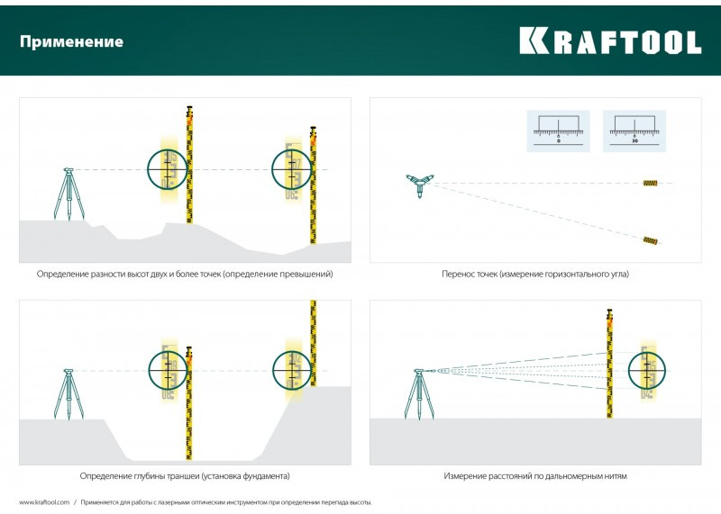 - Использование. Для определения разности высот между несколькими отметками на местности. Позволит выполнять работу на строительной площадке стабильно и точно.