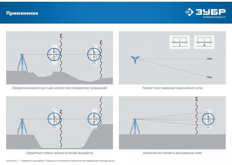 Профессиональный инструмент для работы с лазерным, оптическим инструментом для определения перепадов высоты. Имеет миллиметровую шкалу и E-градуировку .