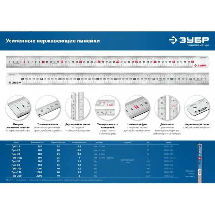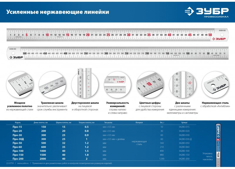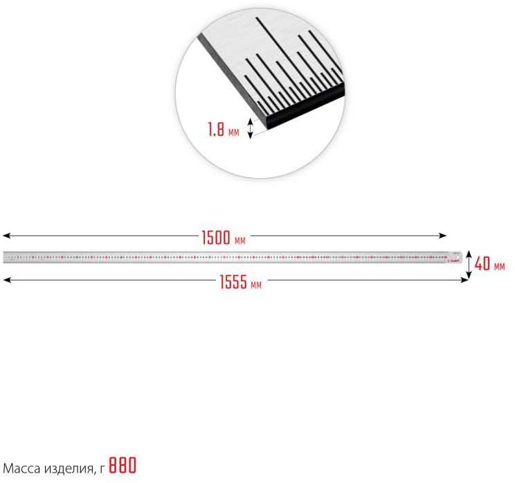 • Усиленное полотно из нержавеющей стали с травлёной шкалой увеличивает срок службы инструмента.