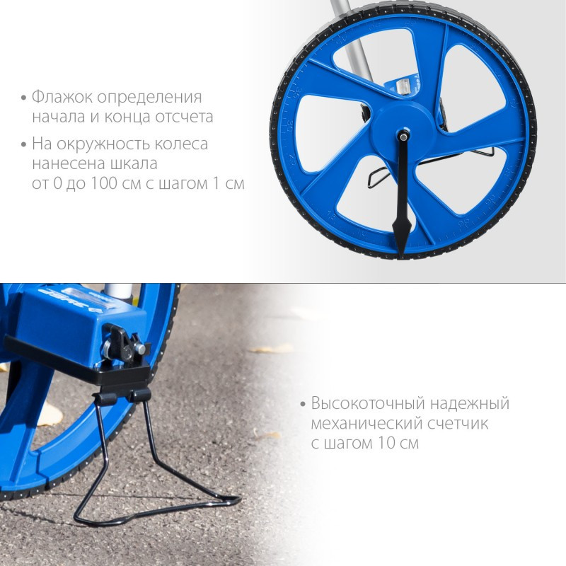 - Колесо из ударопрочного ABS-пластика с износостойким покрытием и нанесенной измерительной шкалой с шагом 1 см