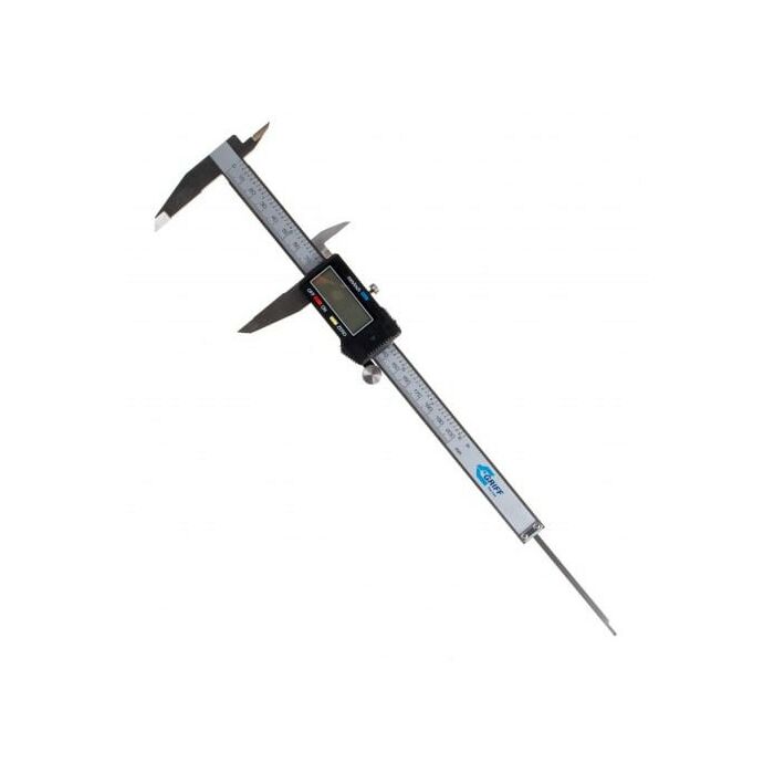 Инструмент оснащается эргономичным цифровым блоком. Он позволяет производить измерения в миллиметрах и дюймах.