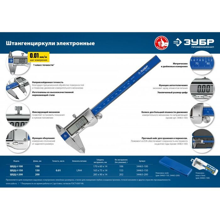 Описание Зубр ШЦЦ-I-100-0,01