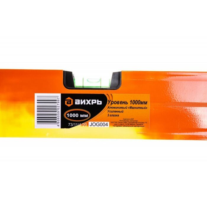 - Уровень алюминиевый "Магнитный" 1000 мм, фрезерованный, 3 глазка (1 зеркальный) Вихрь - измерительный инструмент при строительных, ремонтных и отделочных работах для поиска и исправления отклонения поверхностей. Корпус прочный и износостойкий, изготовлен из алюминия. Фрезерованная рабочая поверхность служит для уменьшения возможной погрешности при измерениях. Длина уровня 1000 мм.