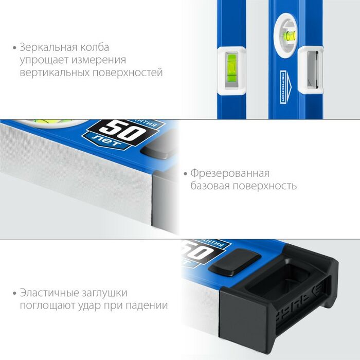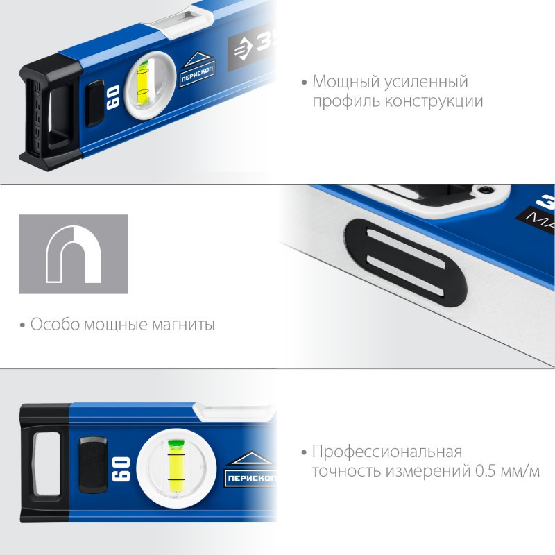 Магнитный мощный уровень с удобными рукоятками и фрезерованной базовой поверхностью