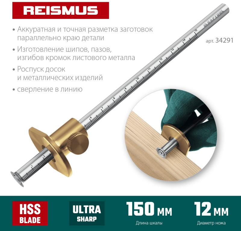Профессиональный инструмент для выполнения точной, ровной и аккуратной разметки заготовок параллельно краю детали, изготовления шипов, пазов, изгибов кромок листового металла, роспуска досок и металлических изделий, сверления в линию.