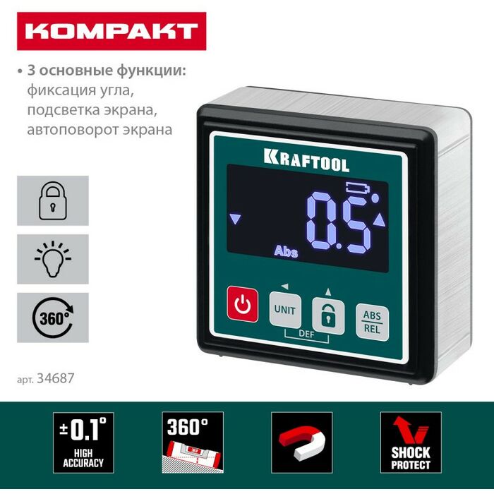 Уровень-уклономер электронный KRAFTOOL KOMPAKT 4 х 90 С точность 0.1 [34687]