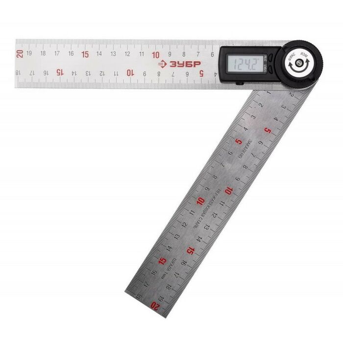 Транспортир-угломер электронный Зубр Профессионал УТЭ-20 200 мм, диапазон 0-360°, точность 0.3°, фиксация угла [34294]
